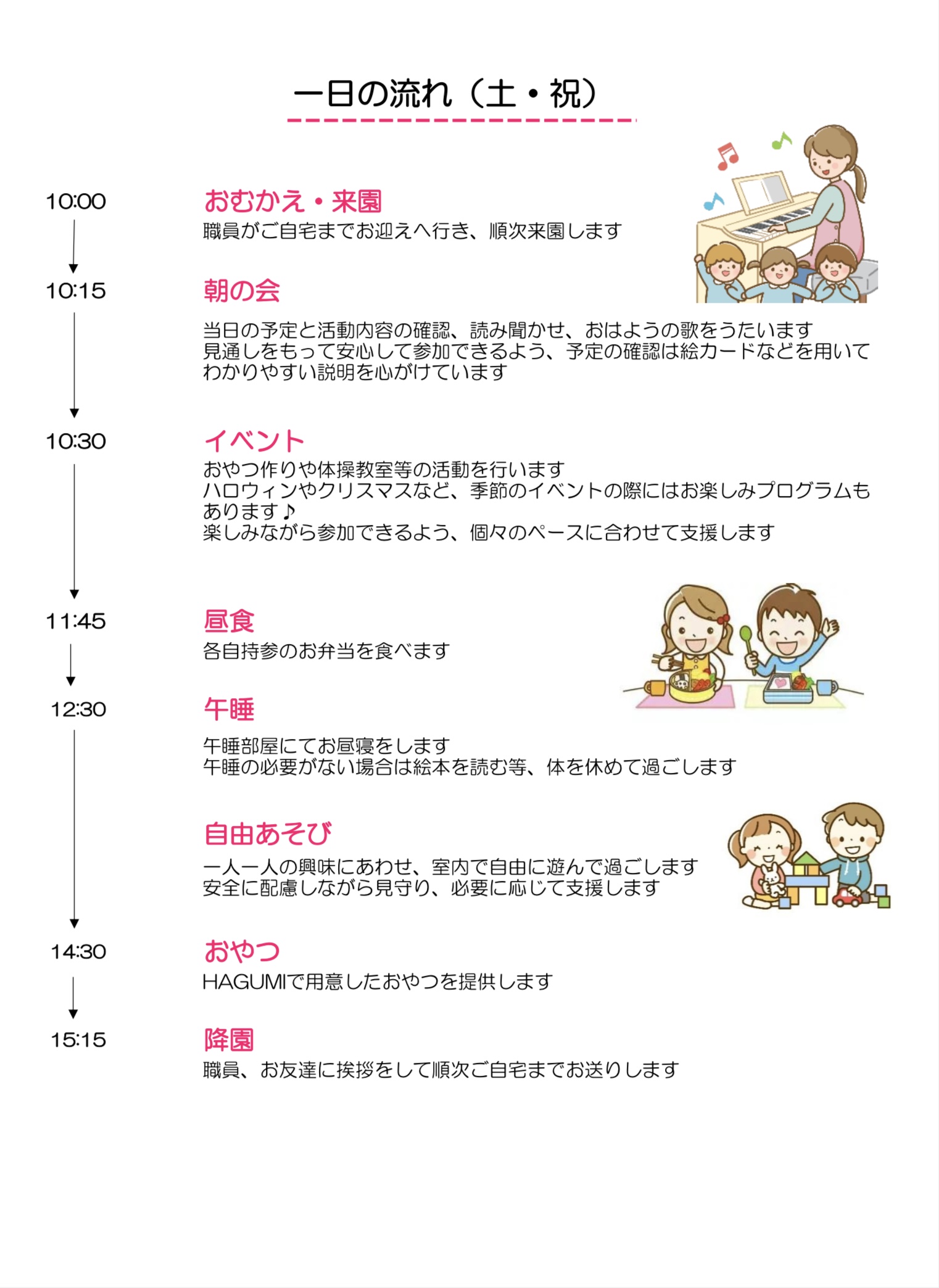 HAGUMIの1日の流れ(平日、土・祝)をご紹介します♫