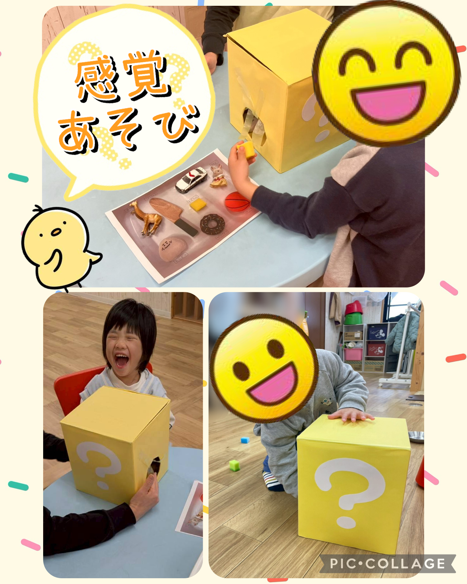 感覚あそびでは箱の中身はなんだろな?をしました。