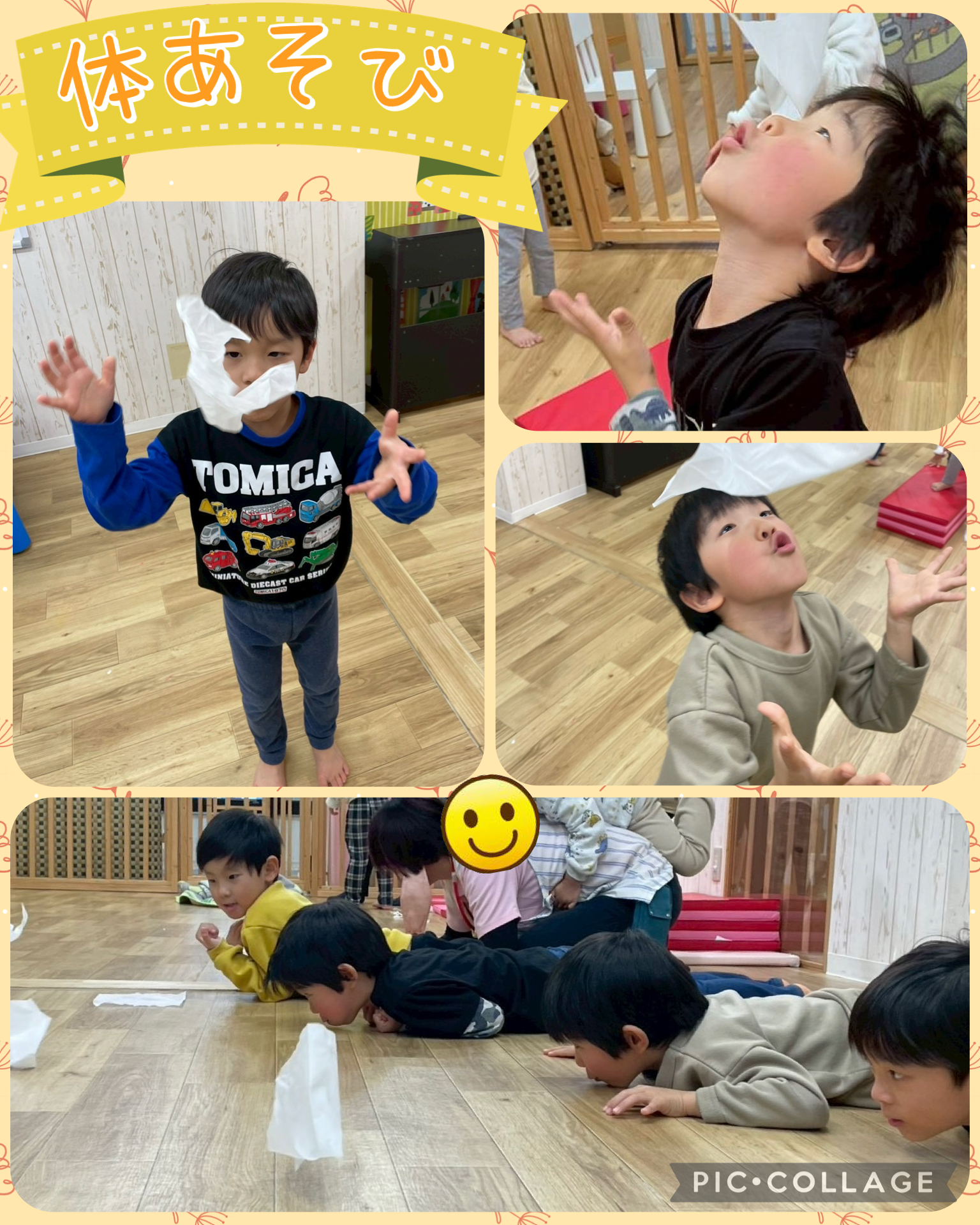 体あそびでは、ティッシュキャッチをしました🙌