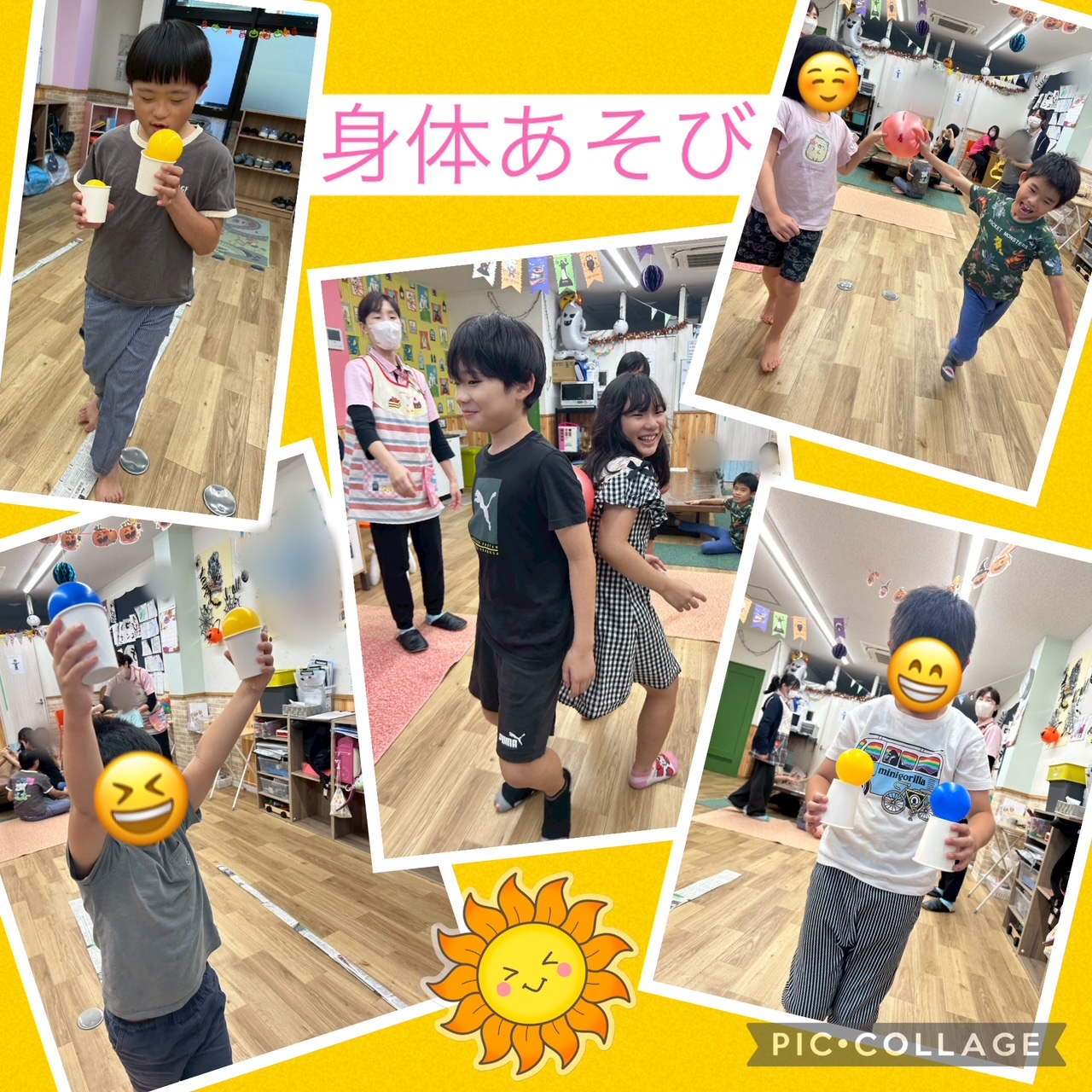 身体あそびでは、ボールを使った統合感覚ゲームをしました